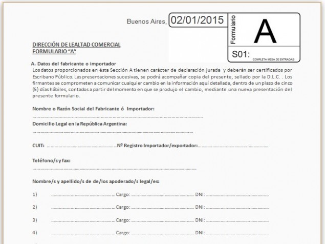 Por otra parte, también se informó que a partir del 5 de enero, toda presentación que se realice ante la Dirección de Lealtad Comercial (excepto Metrología Legal) deberá realizarse exhibiendo el ejemplar ORIGINAL del Formulario “A” o bien una copia autenticada por Escribano Público del mismo.