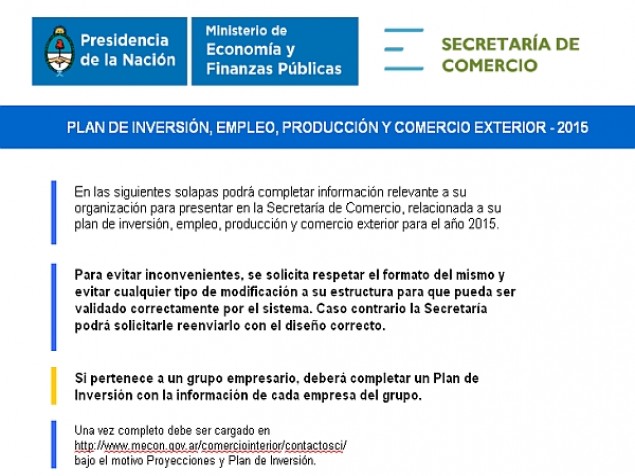 Los interesados deberán completar los datos relevantes en materia de inversiones, empleo, producción y comercio exterior para el año 2015.